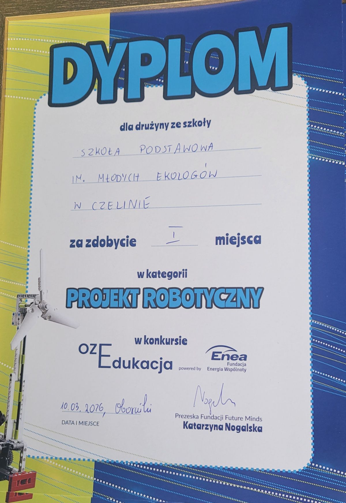 Nasza drużyna rywalizowała 10 marca 2026 r. w Obornikach i została oceniona bardzo wysoko (I miejsce w części robotycznej i II miejsce w punktacji ogólnej). Jako jedna z siedmiu drużyn z kraju została zaproszona na spotkanie finałowe do Poznania – Enea Stadion Lecha Poznań. 27 marca 2026 r. siedem najlepszych szkół prezentowało raz jeszcze swój projekt edukacyjny oraz wymieniało doświadczenia i umiejętności w realizacji misji robotycznych.