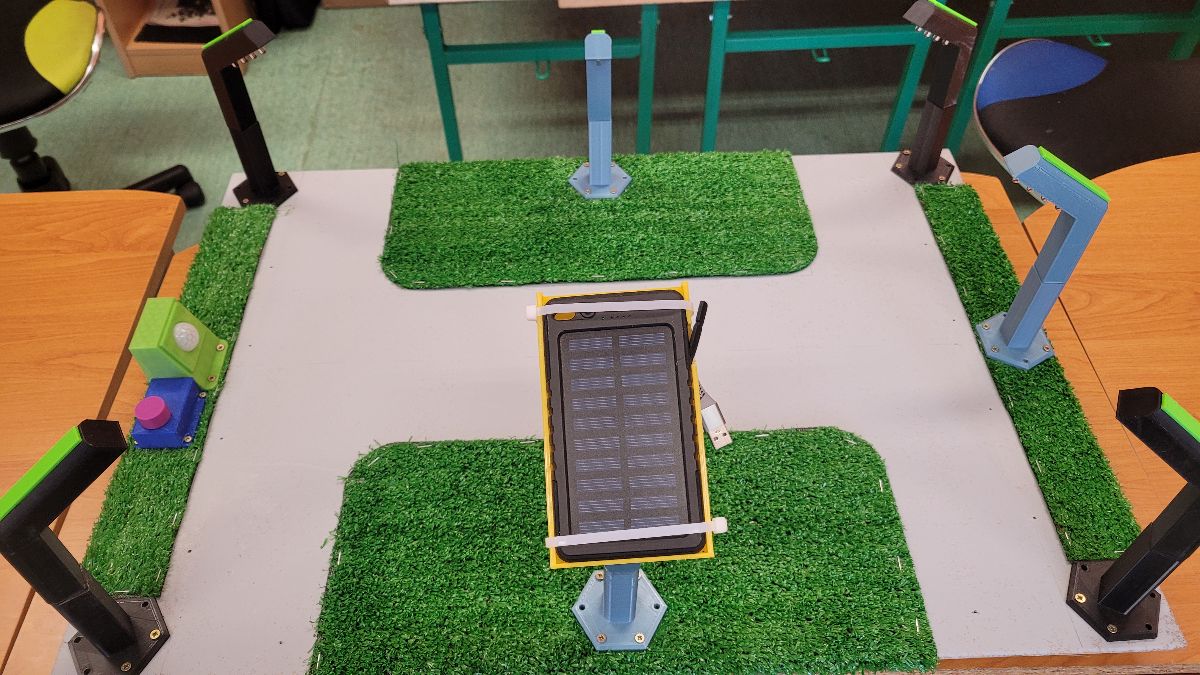Drużyna miała do wyboru jeden z tematów: energia słońca, energia wiatru, energia wody, biomasa lub geotermia. Nasz zespół zajął się opracowaniem działającego modelu oświetlenia posesji szkoły z wykorzystaniem czujnika ruchu, energooszczędnych lamp led i regulatora do sterowania czasem świecenia lamp. Wszystkie elementy modelu zostały zaprojektowane i wydrukowane na szkolnej drukarce 3D. Staraliśmy się do realizacji zadania projektowego wykorzystać urządzenia z „Laboratorium Przyszłości” - do sterowania - zestaw ARDUINO, czujnik ruchu, potencjometr, przewody, lutownice i diody led. Do zasilania oświetlenia zastosowaliśmy panel fotowoltaiczny z akumulatorem, który ten panel ładuje w dzień światłem słonecznym.