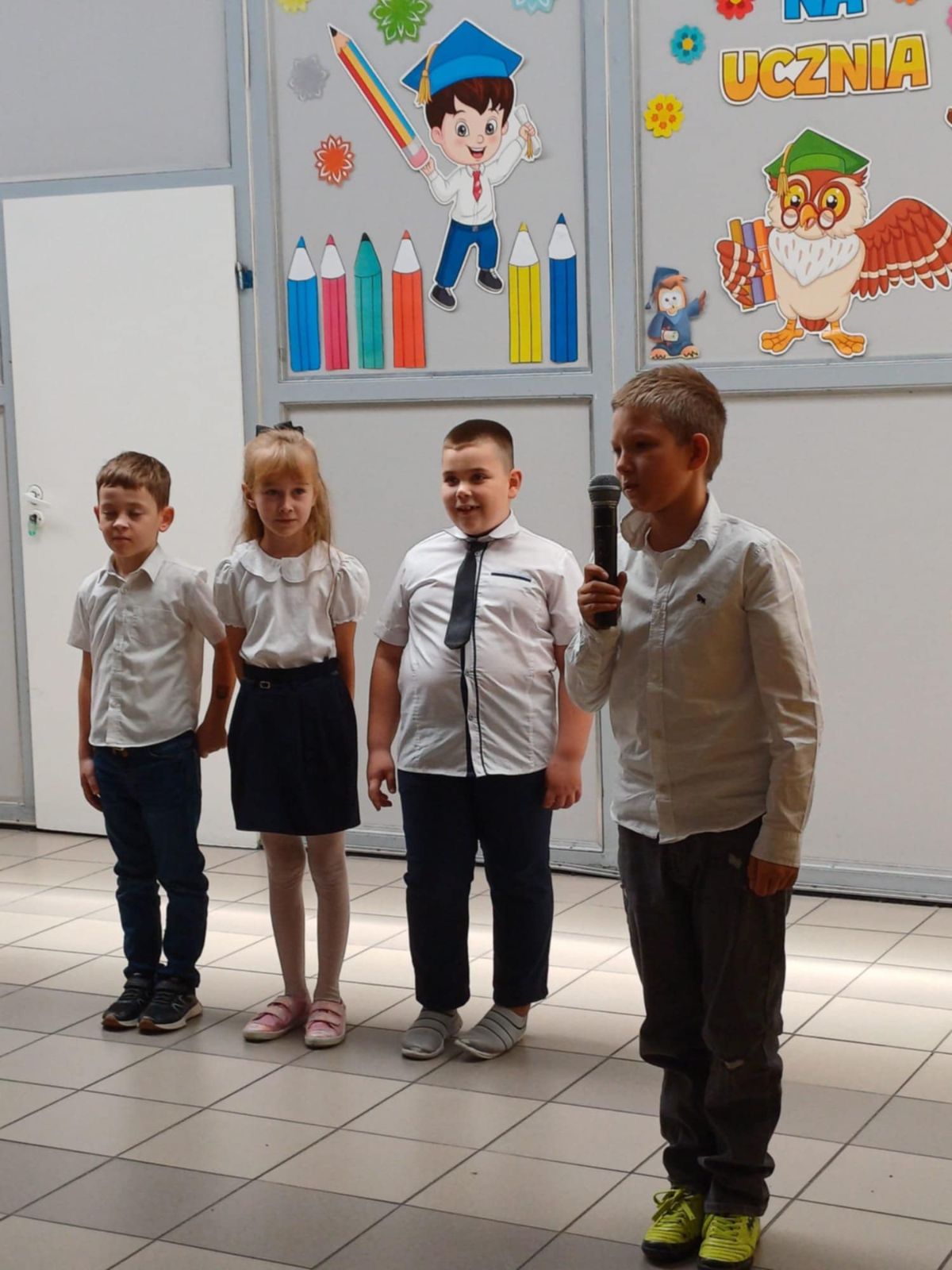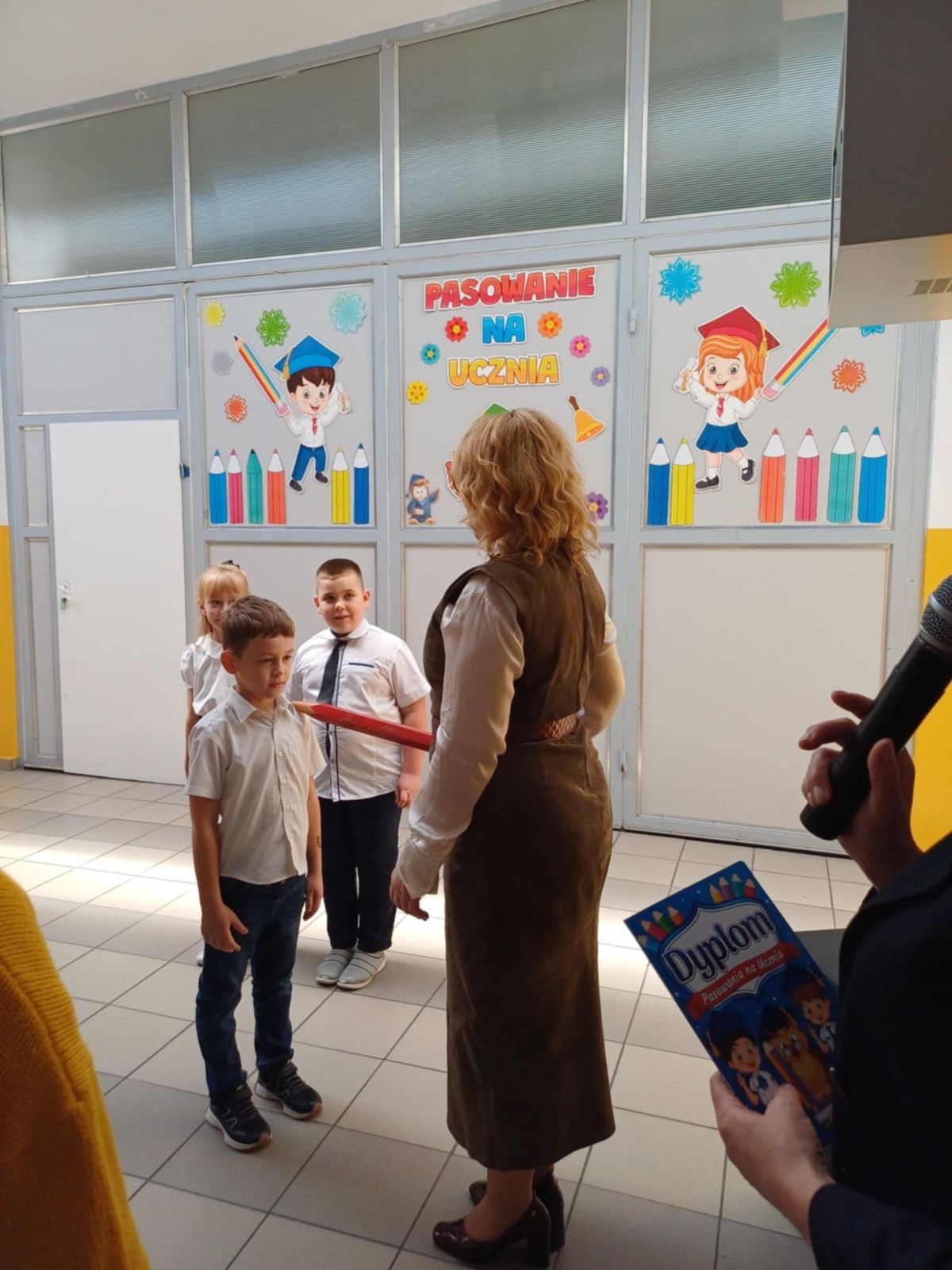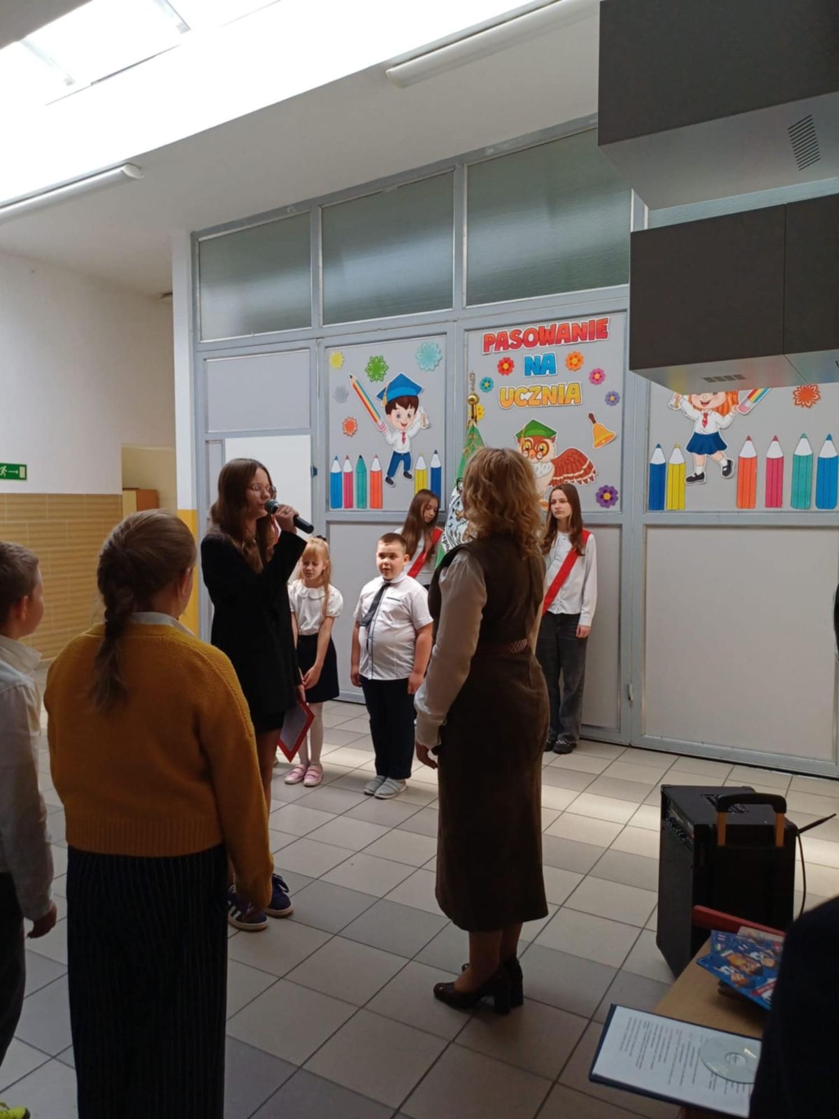 Pierwszoklasiści zaprezentowali przygotowaną część artystyczną – pełną wesołych piosenek, wierszy i krótkich scenek, którymi rozbawili zgromadzoną publiczność. Dali radę również w próbie picia soku z cytryny, co wielu starszych uczniów Po zdanym egzaminie nastąpił uroczysty moment ślubowania. W otoczeniu rodziców, nauczycieli i uczniów starszych klas mali uczniowie złożyli przysięgę, która symbolicznie otworzyła przed nimi drzwi do świata nauki i nowych wyzwań. Następnie pani dyrektor pasowała każdego z nich na ucznia, dotykając ramienia symbolicznym ołówkiem, co wywołało uśmiech na twarzach zarówno dzieci, jak i dumnych rodziców. Nie zabrakło też gratulacji i życzeń oraz upominków od rodziców oraz kolegów i koleżanek z oddziału przedszkolnego. Wzruszenie malowało się na twarzach zarówno pierwszaków, jak i ich rodziców, gdy uczniowie po raz pierwszy oficjalnie zostali włączeni w poczet szkoły.